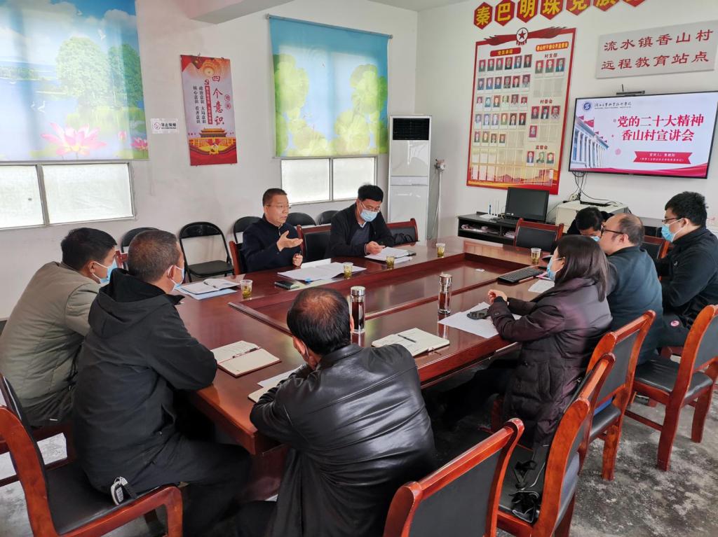 在村两委会委员、驻村干部、党员代表及致富带头人参加的党的二十大精神宣讲会上,惠朝阳书记认真听取了驻村第一书记蒋鹏对驻村工作开展情况的汇报,充分肯定了驻村工作队的工作和取得的成绩。他指出,党的二十大是在全党全国各族人民迈上全面建设社会主义现代化国家新征程、向第二个百年奋斗目标进军的关键时刻召开的一次十分重要的大会,具有划时代、里程碑意义。大会选举产生了以习近平同志为核心的新一届中央领导集体,描绘了以中国式现代化全面推进中华民族伟大复兴的宏伟蓝图,谋划了未来五年乃至更长时期党和国家事业发展的大政方针和战略部署,为奋进新时代、奋斗新征程提供了行动纲领和科学指南。大会对全面推进乡村振兴作出系列部署,提出要坚持农业农村优先发展,扎实推动乡村产业、人才、文化、生态、组织振兴,进一步指明了新时代新征程乡村振兴的总体要求和前进方向。他强调,驻村工作队是单位的一面旗帜,学习好、宣传好、贯彻好党的二十大精神是当前和今后一个时期的首要政治任务。及时准确把握党的二十大对“三农”工作的决策部署,将党的好政策、好措施、好声音传递到香山村党员群众心里,引导广大干部群众听党话、感党恩、跟党走。围绕党的二十大提出的全面推进乡村振兴目标,结合香山村的实际情况,认真谋划,周密研究,扎实推进。要强化高质量党建引领,充分发挥基层党组织战斗堡垒和党员先锋模范作用,全方位做好群众服务和基层治理各项工作,不断凝聚全面推进乡村振兴的强大合力。要找准主攻方向和着力点,持续巩固脱贫成果,大力发展特色产业,吸引更多村民回乡发展,全面推进乡村振兴。