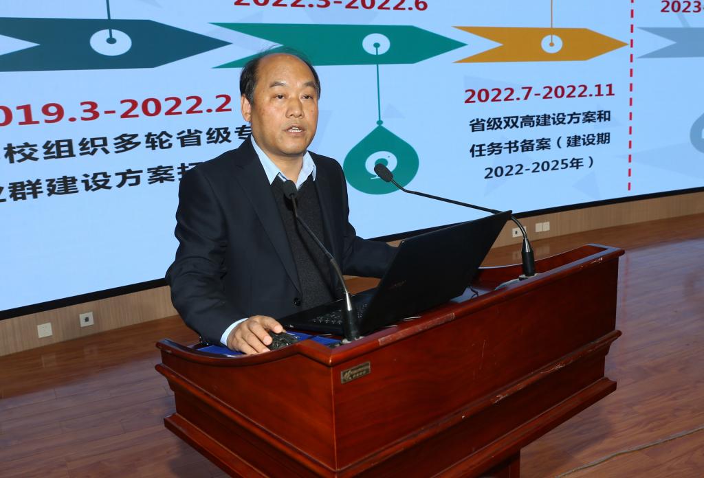 大会共分四个阶段,第一阶段为2022年度教学工作会议。副校长梅创社围绕“我们做了什么、哪些没做好、还应该做什么”三个维度,通报了教育部“双高”建设中期绩效评价结果,肯定了双高”近三年建设期内所取得的成果、成效,指出了我校双高建设的“痼疾”和缺项,并对下一步落后指标的完成和难点指标的突破提出了具体的工作要求。应用化工技术专业群负责人王化冰、现代物流管理专业群负责人张光、机电一体化技术专业群负责人李晓鹏,依次汇报了各专业群在教育教学改革过程中的建设思路及举措;电气工程学院院长夏东盛、信息工程学院副院长白国政、财经与旅游学院院长吴姗娜,依次汇报了各专业人才培养方案升级过程中的的具体做法和下一步规划;材料成型与控制技术专业带头人李云、新能源汽车技术专业带头人许冀阳,依次汇报了优师优育方案的实施进展;最后,国家精品在线开放课程《建筑施工技术》负责人杨谦、校级立项金课《数字化精密制造技术》负责人赵明威,分别分享了优质在线精品课程建设经验和课程标准重构的思路与做法。