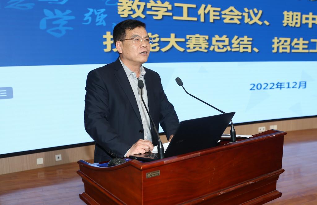 大会第二阶段为期中教学检查总结,教育教学质量管理中心主任罗怀晓、教务处副处长李龙龙、学生处处长郝军分别进行了期中教学检查通报。在技能大赛总结大会阶段,教务处副处长舒蕾汇报了2022年我校技能大赛情况及下一步工作安排;随后的招生工作总结会议上,教务处处长张磊汇报了2022年招生工作总结及2023年招生工作安排。