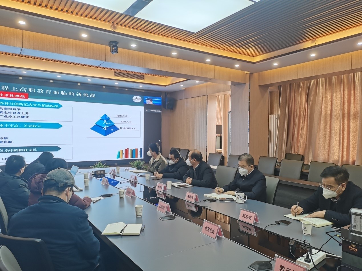 12月20日,全国职业高等院校校长联席会议2022年年会以线上会议形式顺利举办,我校在崇文楼九楼第一会议室组织分会场参会。学校党委书记惠朝阳、校长刘永亮、副校长梅创社以及双高办、教务处、科研处、发展规划处、校企合作处、宣传部、信息化处、继续教育与培训学院、马克思主义学院、材料学院等部门全程参会。