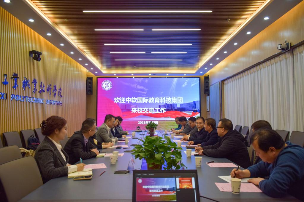 党委书记惠朝阳代表学校对马晓明、成焕一行表示欢迎。在观看完学校宣传片后,惠书记以孙春兰副总理来我校考察时提出的“四有三突破”评价为着力点,详细介绍了我校概况、职教特色、办学理念等方面的情况。他以我校校企合作、产教融合开展情况为切入点,结合教育链、人才链、产业链、创新链的有效衔接,分享了校企合作的思路与想法,指出高等职业教育发展要以党的二十大精神为指引,要围绕国家战略新兴产业、未来产业进行布局,不断完善动态调整机制,优化专业结构,扎实做好职业教育与重大产业战略匹配工作。最后,他希望以本次交流为契机,进一步推动我校与中软国际教育科技集团实现深度合作。