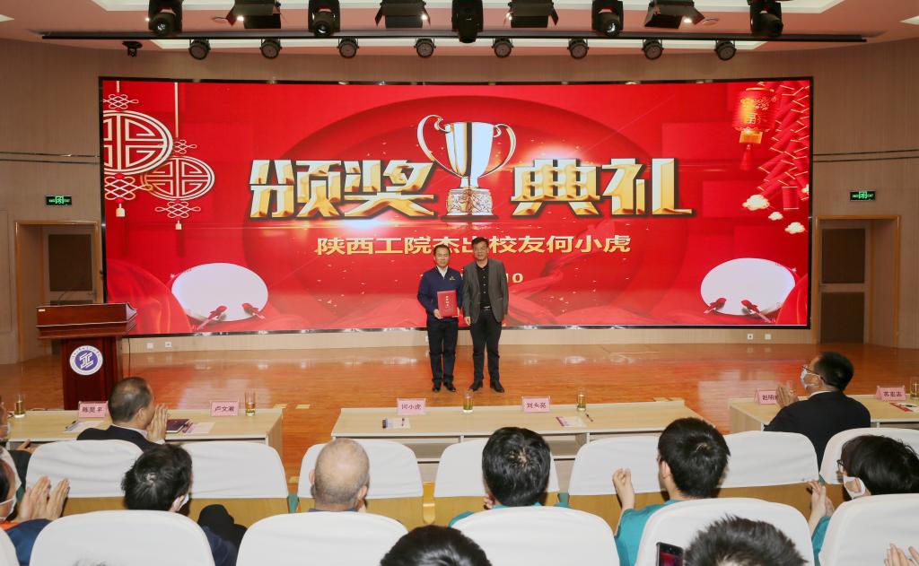 首先,为表彰何小虎在锻造陕工品牌中做出的贡献,校长刘永亮代表学校为何小虎颁发“陕西工院杰出校友”荣誉证书。