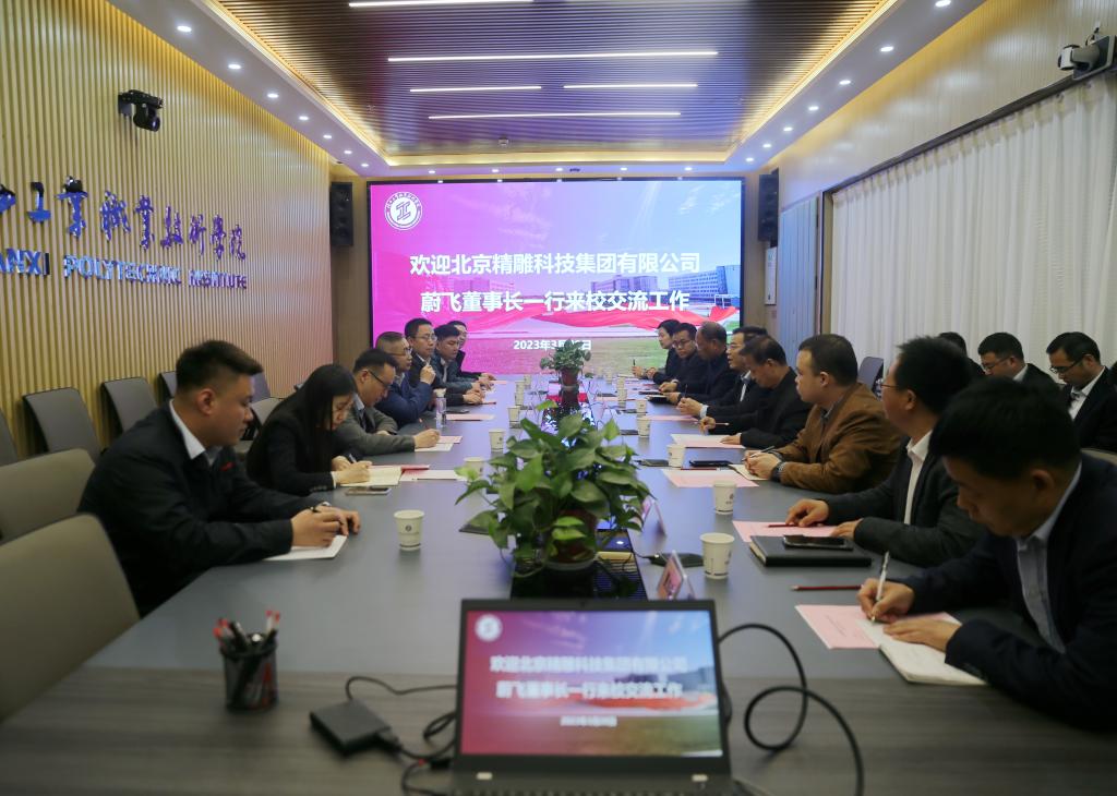 为进一步深化校企合作新模式,推进产教深度融合,提升装备制造产业高端人才培养质量。3月28日下午,北京精雕董事长蔚飞一行6人来我校访问交流。校长刘永亮、党委副书记贺天柱、副校长刘清及相关部门负责人陪同座谈。