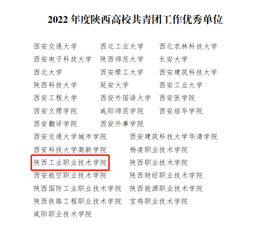 近日,共青团陕西省委、中共陕西省委教育工委印发了《关于2022年度陕西高校共青团述职评议考核结果的通报》,我校荣获“2022年度陕西高校共青团工作优秀单位”,团委副书记薛媚荣获“2022年陕西高校共青团工作先进个人”。