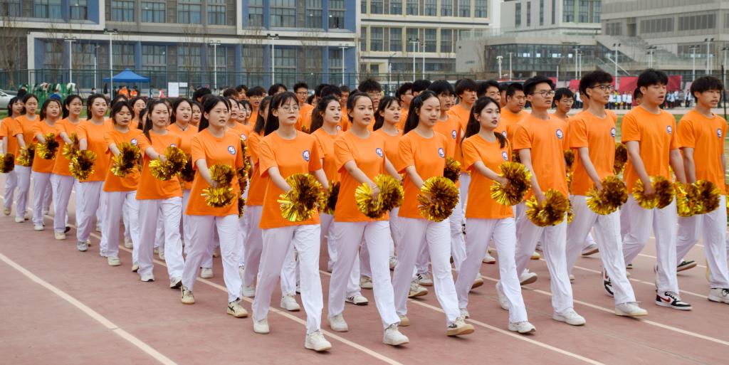 运动会不仅是对学校体育水平的一次集中检阅,也是学校教育教学改革和“五育”教育的一次真实展示,不仅是对师生身体素质、竞技水平和意志品质的综合体现,也是对师生精神风貌、团队意识和集体荣誉感的检阅。开幕式上,伴随着慷慨激昂的运动员进行曲,国旗方队、会旗方队、校旗方队、会徽方队、彩旗方队、裁判员代表队及各二级学院的运动员方队意气风发、精神抖擞地依次走过主席台,赢得了全场经久不息的掌声和欢呼。变换的造型、嘹亮的口号生动诠释了全体工院人不断“勇攀高峰、问鼎卓越”的信念与气魄。