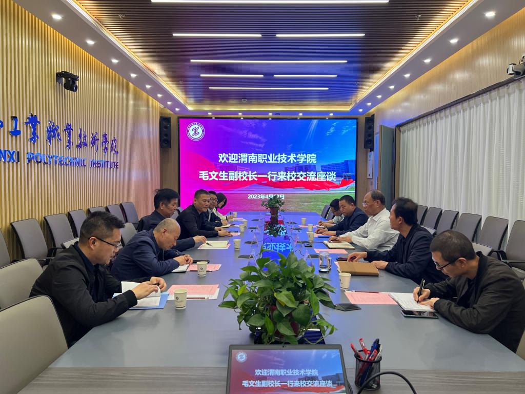 4月17日下午,渭南职业技术学院副校长毛文生一行6人来我校经开校区调研交流,副校长刘清及基建处、财务处、经开校区综合办等负责同志参加了座谈。