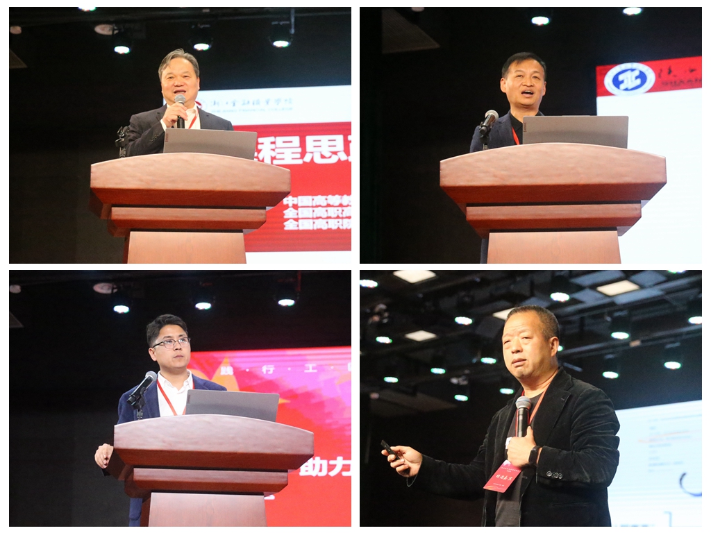 会议第二阶段进行主题报告。中国高等教育学会职业技术教育分会会长周建松以《课程思政的政策与实践》为主题从习近平总书记为课程思政指明方向、教育部印发课程思政纲要系统部署、教育部门推进课程思政建设工作、浙金院课程思政建设的具体实践、课程思政成效的关键是教师素养这五个方面进行了会议报告,探讨了职业院校课程思政建设的新动向以及课程思政教学的新方法。陕西工业职业技术学院党委副书记贺天柱进行了题为《课程思政建设思考》的汇报交流,他从课程思政内涵本质、课程思政内容、教学中存在的问题、课程思政实施以及课程思政工作推进五个方面分析了课程思政的丰富内涵,并提出了深入推进课程思政改革创新的具体举措。超星职业教育研究院副院长钱会博以《借助信息化手段,助力职业院校课程思政高质量发展》为主题进行分享交流,他从职业院校课程思政教学改革面临的问题出发,针对课程思政模块库、课程思政大数据、课程思政教师研修三大模块提出具体解决策略,强调应用信息化手段助力课程思政建设,做实、做活课程思政教学。武汉大学课程思政教学研究中心常务副主任陈训威作了题为《国家级课程思政建设的探索与实践》的报告和经验分享,他结合武汉大学课程思政教学研究中心的相关经验做法,从用户思维、系统思维、标准思维、产品思维四个层面分析课程思政创新发展路径,为全面推进高校课程思政建设高质量发展提供了新思路新方案。