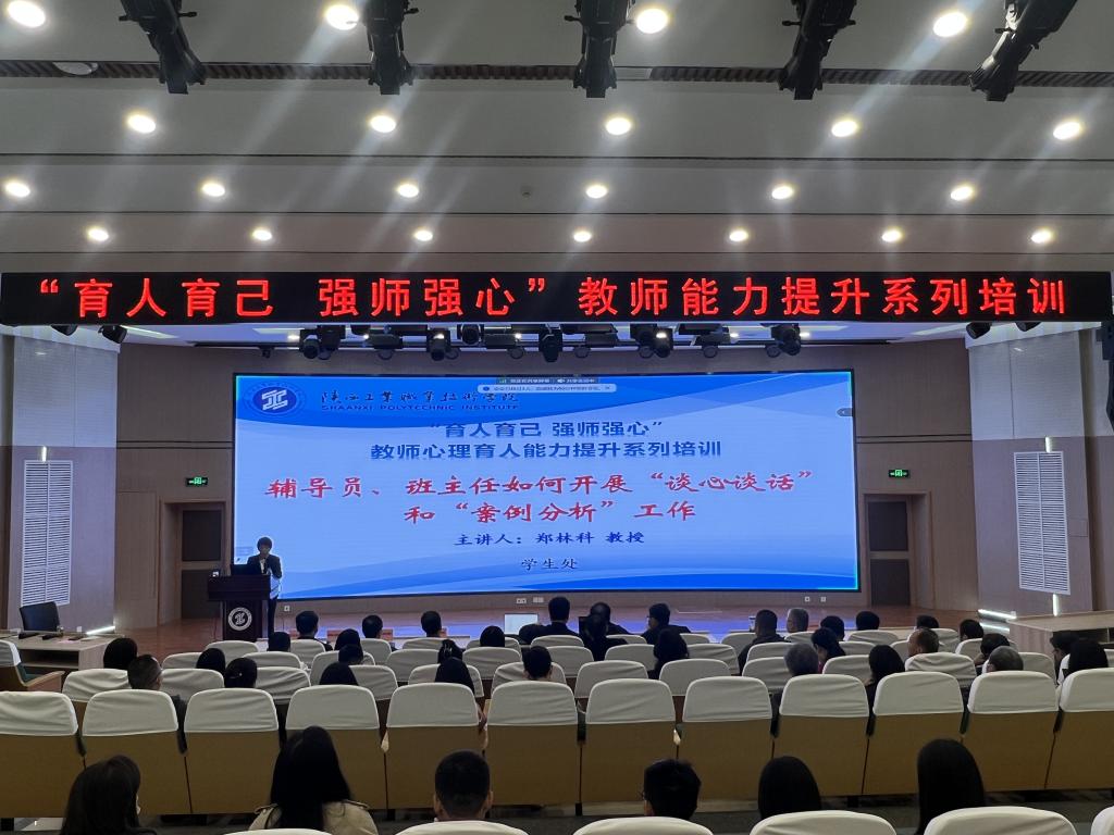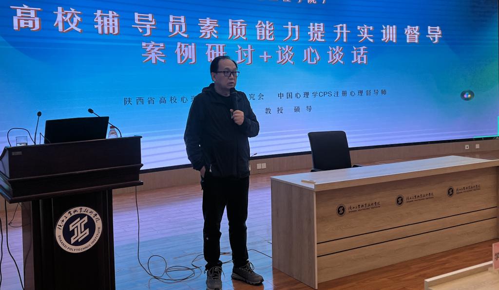 为进一步推进我校学生工作队伍专业化建设,提升辅导员、班主任素质能力,5月11日上午,学生处心理咨询中心特邀陕西省心理素质教育研究会会长、辅导员素质能力大赛评审专家郑林科教授在渭城校区学术会堂为我校作“高校辅导员素质能力提升实训督导 案例研讨+谈心谈话”专题培训。各二级学院党总支书记、学工办主任、全体辅导员、班主任、及心理健康教育全体专兼职教师等100余人参加培训,本次培训由学生处副处长耿丽主持。