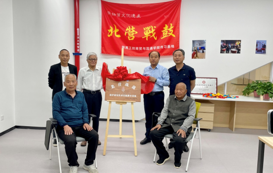 在交流座谈后,梅创社副校长和罗艺峰教授共同为我校“北营战鼓”保护研究传承实践教育基地进行了揭牌。该基地由图书馆和商贸流通学院共同建设,设在图文信息中心四层。
