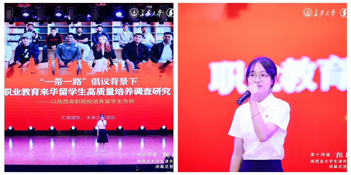 国际教育学院参赛作品《“一带一路”倡议背景下职业教育来华留学生高质量培养调查研究——以陕西高职院校培养留学生为例》作为特等奖代表在颁奖仪式上做汇报展示(全省高校唯四、高职唯一)。