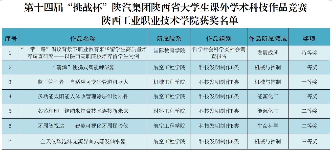 我校在第十四届“挑战杯”陕汽集团陕西省大学生课外学术科技作品竞赛中取得新突破