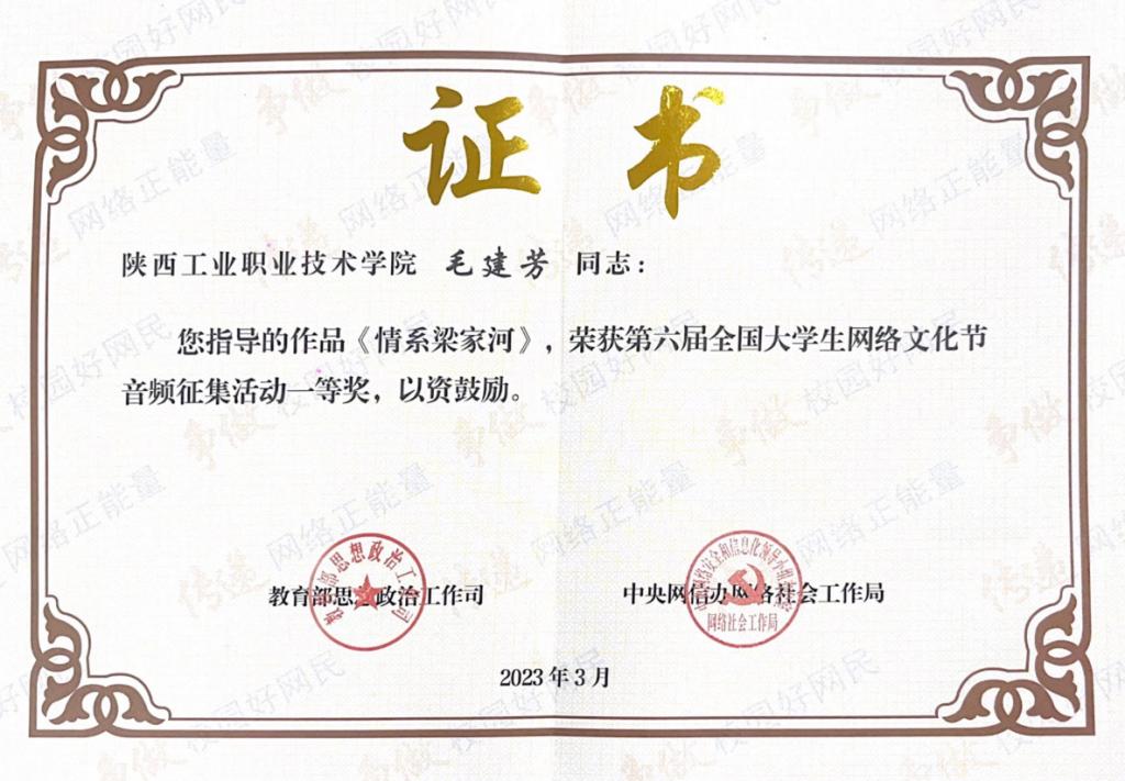 近日,教育部思想政治工作司公布了第六届“全国大学生网络文化节”和“全国高校网络教育优秀作品推选展示活动”获奖名单,作为全国高校网络思政领域最高级别竞赛之一,我校与全国高校同台竞技,在35225件作品中,获一等奖1项,二等奖2项。其中音频作品《情系梁家河》荣获全国一等奖,《路标与灯盏》荣获全国二等奖,原创歌曲《大国工匠》荣获全国二等奖,是陕西省唯一荣获全国一等奖项的高职院校。