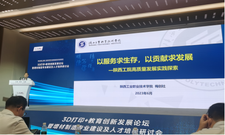 6月17日上午,梅创社副校长受邀参加了第六届中国(西安)国际3D打印大会暨秦创原3D打印高端论坛分论坛3D打印+教育创新发展论坛暨增材制造专业建设及人才培养研讨会,并作了题为“以服务求生存,以贡献求发展”的论坛报告。
