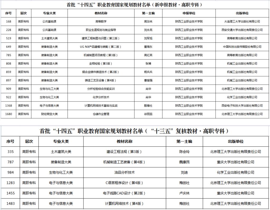 我校18本教材入选首批“十四五”职业教育国家规划教材