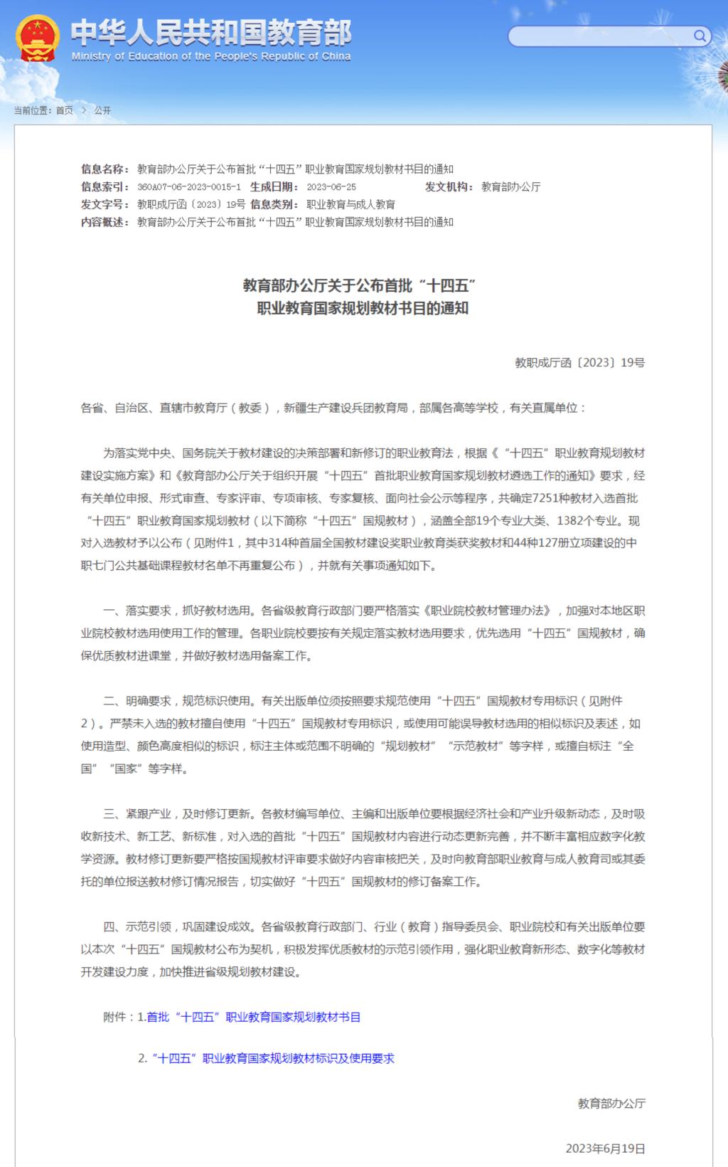 近日,教育部办公厅公布了《首批“十四五”职业教育国家规划教材书目的通知》(教职成厅函〔2023〕19号),我校共有18本教材入选首批“十四五”职业教育国家规划教材书目。