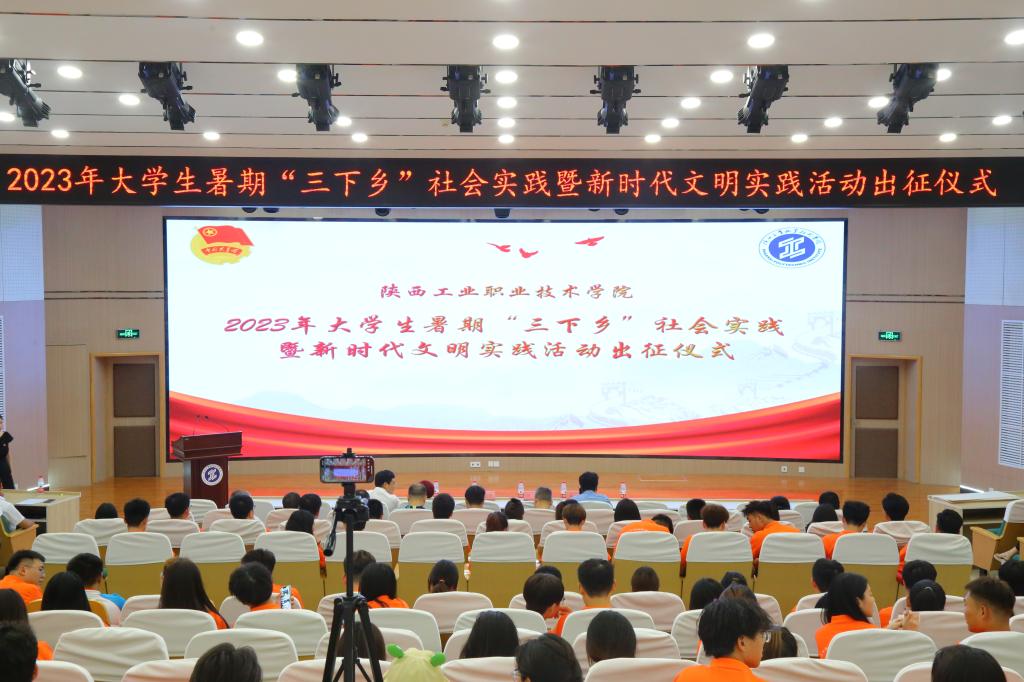 出征仪式在庄严肃穆的国歌声中拉开帷幕。仪式上,宣传部部长王金辉介绍了学校开展2023年大学生暑期“三下乡”社会实践活动暨新时代文明实践活动方案;学工部部长郝军宣读了《关于2022年全国大中专学生志愿者暑期“三下乡’”社会实践活动的通报》《中共陕西省委宣传部中共陕西省委教育工委共青团陕西省委等关于2022年陕西省大中专学生志愿者暑期文化科技卫生“三下乡”社会实践活动先进集体、先进个人的通报》,以及《关于表彰我校2022年暑期社会实践活动的通知》;团委书记赵双军宣读了《关于公布陕西工业职业技术学院2023年暑期社会实践校级立项团队的通知》。