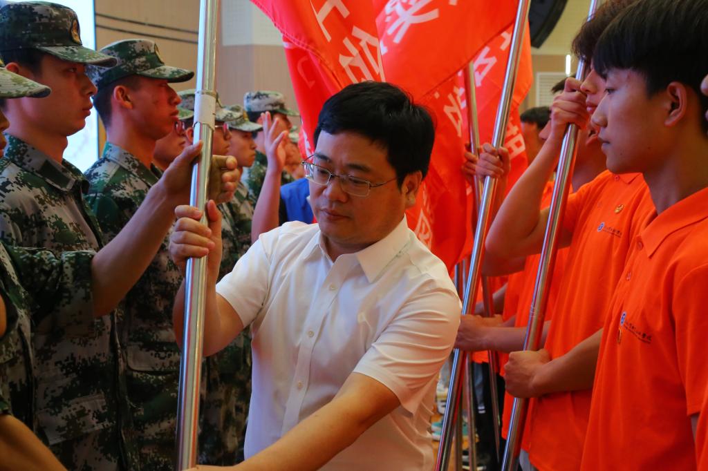 7月6日下午,我校在学术会堂举行2023年大学生暑期“三下乡”社会实践暨新时代文明实践活动出征仪式议程。党委副书记田昊,党委宣传部部长王金辉,学工部部长、学生处处长郝军,各二级学院党总支书记、团总支书记、暑期社会实践团队指导老师、学生代表共计300余人参加了出征仪式。仪式由团委副书记薛媚主持。