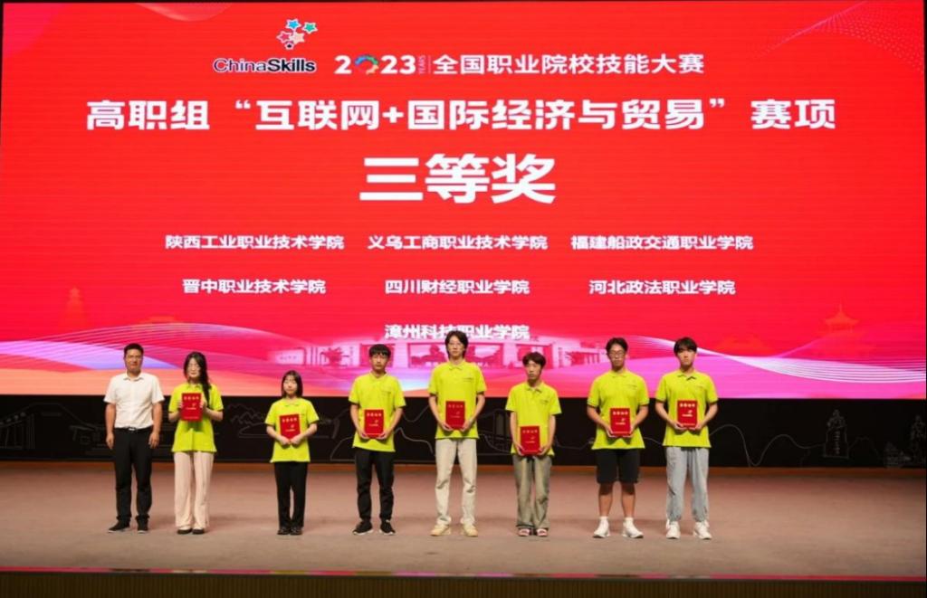 2023年7月24日至25日,2023年全国职业院校技能大赛(高职组)“互联网+国际经济与贸易”赛项在贵州交通职业技术学院成功举办,共有自全国不同省、市、自治区的66支代表队同台竞技、相互切磋。经过两天的激烈竞争,我校商贸与流通学院由王粉萍、程天一老师指导,市场营销专业侯维萍、杨佳敏、牛佳怡与航空物流专业的皇甫荣荣4名同学组成的代表队斩获团体三等奖。