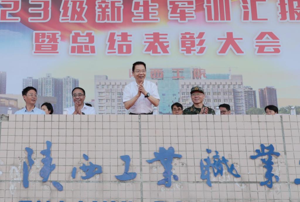 9月15日上午,我校2023级新生军训汇报暨总结表彰大会在渭城校区、经开校区田径运动场分别举行。6000余名参训新生以坚韧不拔的壮志豪情和昂扬向上的青春风采接受了校领导和承训单位官兵的检阅,为军训生活画上圆满的句号。校领导,职能处室处级干部,各二级学院院长及党总支书记、2023级新生、承训部队官兵参加了仪式。