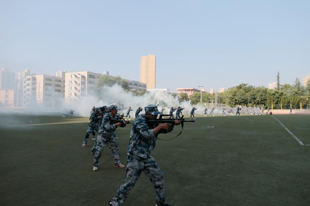大会在雄壮的国歌声中拉开帷幕,全体师生面向国旗庄严肃立,集体行注目礼,向国旗致敬。随着校领导指示下达,军训汇报表演正式开始。铿锵正步,踏破朝阳光芒万丈;嘹亮口号,呐喊青春热血滚烫。各位学员进行擒敌拳、战术表演、内务展示,或杀声震天,豪情满怀,尽显工院学子的时代风采;或军容严整,动作精炼,节奏分明,展现优良严谨的军人风貌。通过10天的磨砺与考验,全体同学的精神面貌、意志品质、集体观念、协作意识在短时间内有了大幅提高,军训中养成的永不放弃、团结互助的精神也将激励各位新生成长为品德优良、知识丰富、技能过硬的高素质人才。