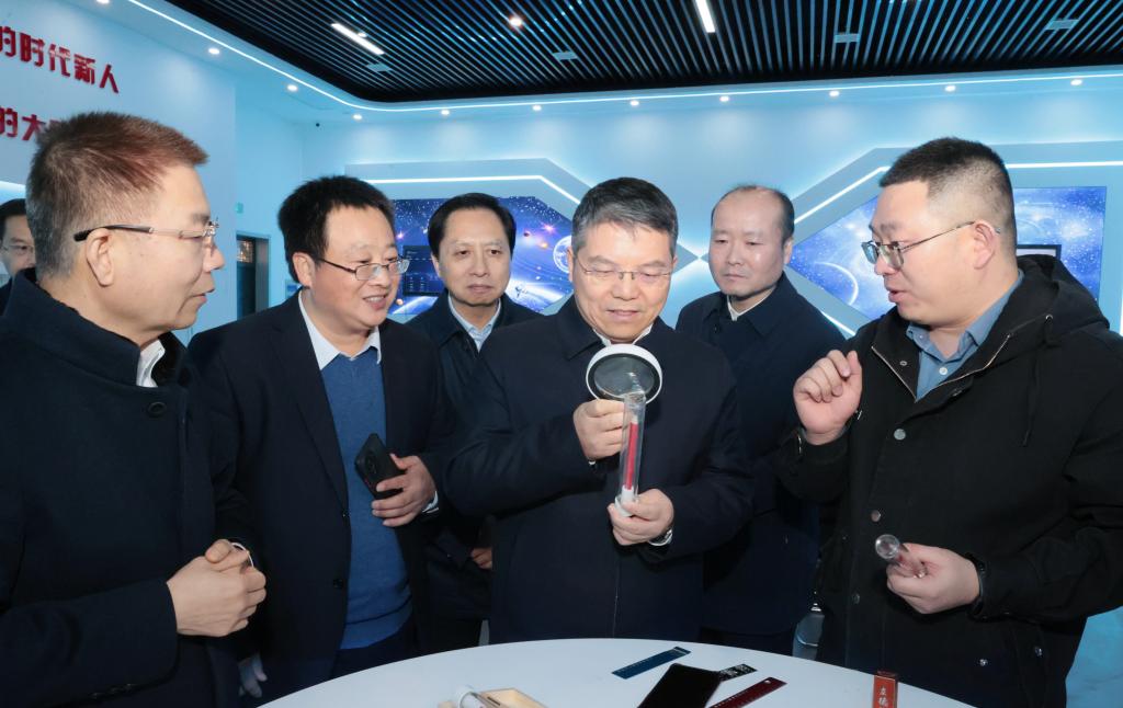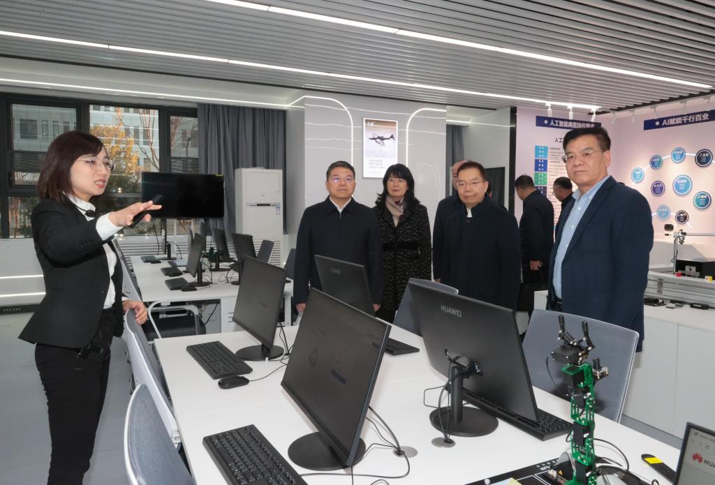 孙大光先后参观和调研了陕西工业职业技术学院智能制造协同创新中心、先进制造技术工程中心、5G+智能成型实训基地、马院VR实训中心、数智工程产业学院、华为产教融合实训基地、图文中心等,每到一处,孙大光都与相关负责人和师生互动交流,详细了解高校思政课教学、产教融合、校企合作、学生就业等情况。孙大光对陕西工业职业技术学院的高校思想政治工作给予了充分肯定。他强调,要坚持以习近平新时代中国特色社会主义思想为指导,加强思政阵地建设和队伍建设,不断探索高校思想政治工作的新思路、新方法,推动党的创新理论进教材、进课堂、进师生头脑,提高高校思政育人工作的质量和水平。要瞄准技术变革和产业优化升级的方向,持续深化产教融合、校企合作,加快构建现代职业教育体系,培养更多高素质技术技能人才、能工巧匠、大国工匠,为奋力谱写中国式现代化建设的陕西新篇章作出新的贡献。