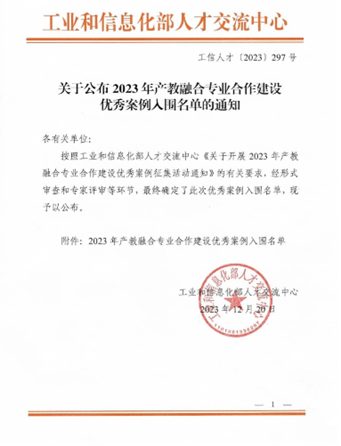我校案例成功入围工业和信息化部产教融合专业合作建设优秀案例