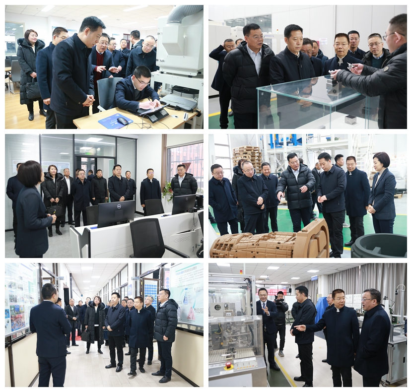 交流过程中,赵林斌、景军荣一行现场考察了智能制造协同创新中心、先进制造技术工程中心、智能成型实训基地、欧姆龙实训中心,并就学校发展、战略合作等问题进行了深入讨论。