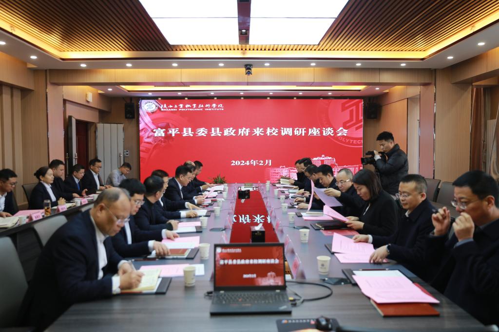 2月22日上午,渭南市委常委、富平县委书记赵林斌,县委副书记、县长景军荣一行来校调研交流。学校党委书记惠朝阳出席座谈会,校党委副书记、校长刘永亮主持会议。