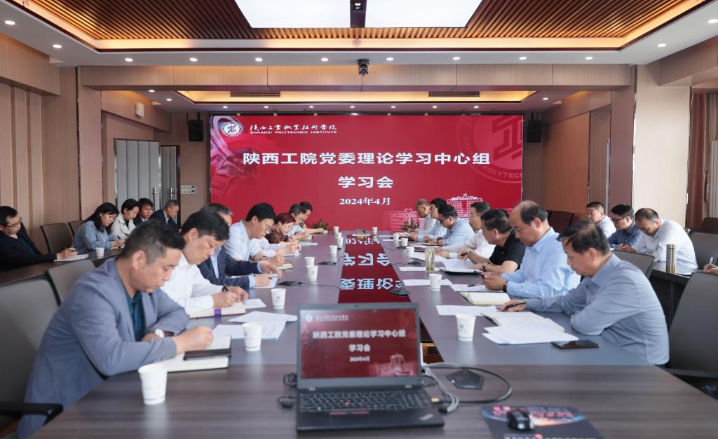 4月17日下午,陕西工院党委理论学习中心组召开专题学习会议,中心组全体成员参加会议,各党总支书记列席会议,会议由党委书记惠朝阳主持。