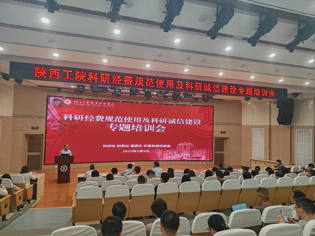 为进一步加强学校科研人员诚信教育和学术道德意识,规范科研经费使用,积极营造良好的科研生态和学术氛围,5月10日下午,我校在渭城校区学术会堂召开了“科研经费规范使用及科研诚信建设专题培训会”,学校副校长梅创社,科研处、财务处、国资处、纪委监督检查室等部门负责人、各二级学院(部)负责人、全校引进高层次人才、科研平台负责人、各级各类科研项目负责人等300余人参加了本次培训会。会议由科研处处长刘引涛主持。