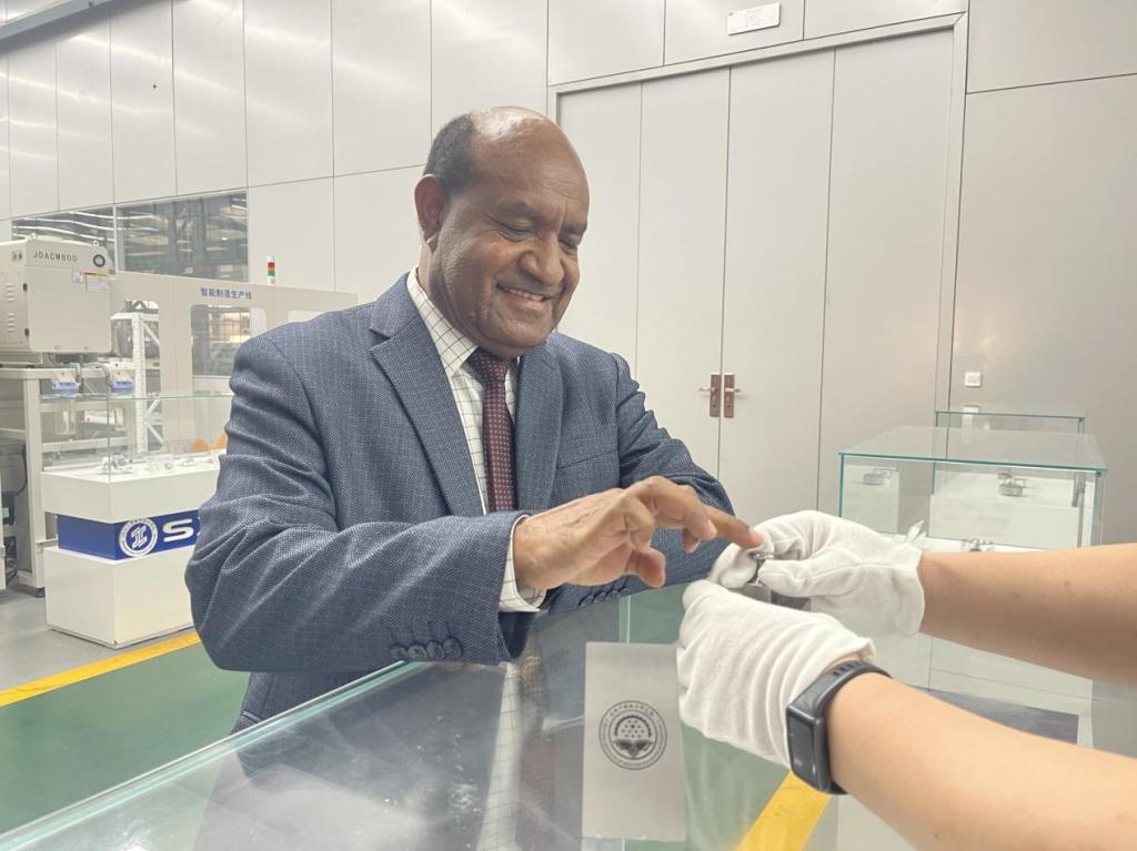 在校期间,裴先生先后参观了渭城校区、经开校区相关教育教学设施。裴先生感叹我校育人与实践理念与联合国教科文组织所倡导的教育可持续发展目标高度契合,学校先进一流、功能完善的实训设施令他印象深刻。