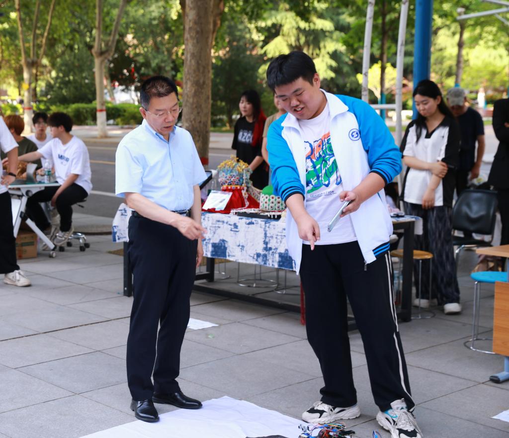 活动现场,党委书记惠朝阳、副校长梅创社、刘清及宣传部、学工部、教务处、科研处等部门负责同志,与现场展示的青年学生亲切交流,鼓励学生们要主动服务国家需求,助力新质生产力发展,努力提升自己的专业技能。各二级学院技能展示、荣获陕西高校“活力社团”学生社团的秦马研习社、航模社、电器维修协会、精艺手工研习社,以及其他学生社团的同学们运用所学技能,进行科技作品、技术服务、技艺表演和文化体育等技能成果展示。