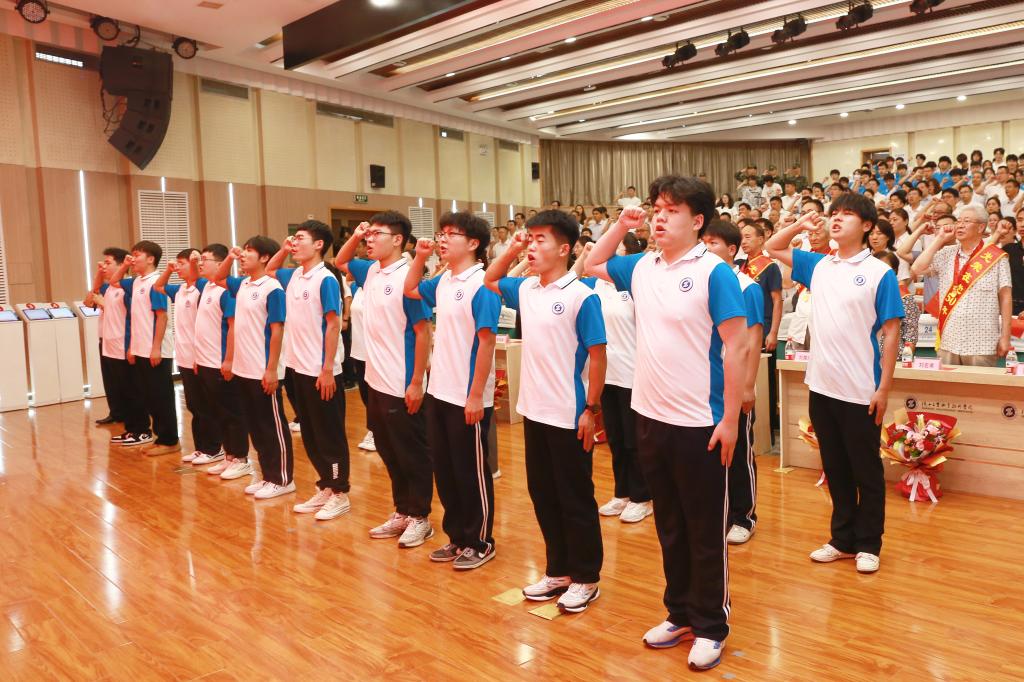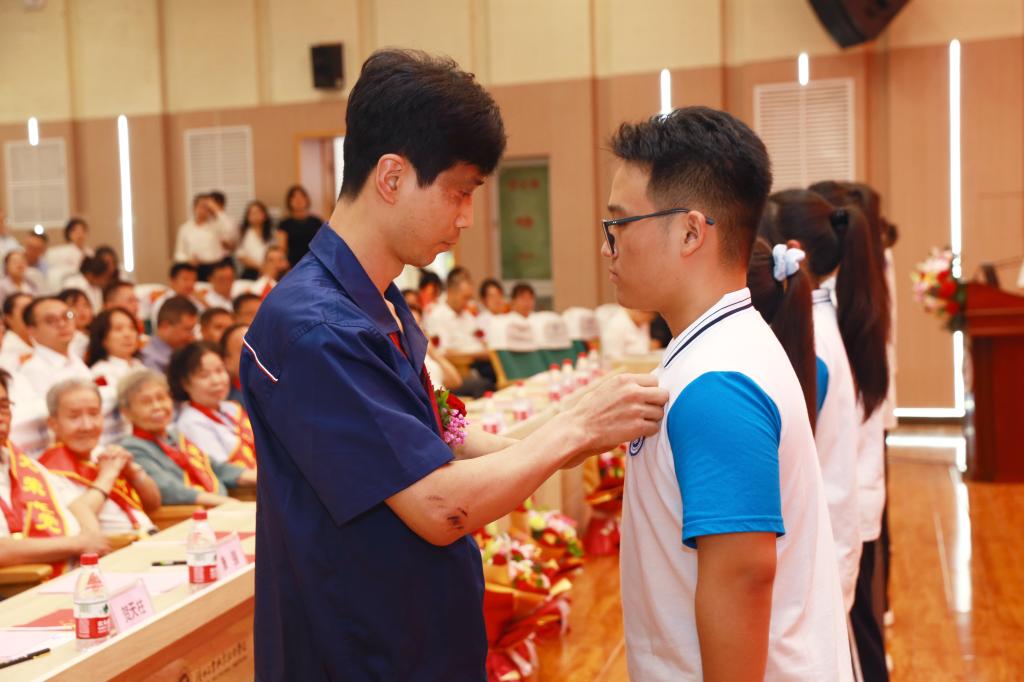 在全国师德标兵卢庆林同志的带领下,新进党员进行入党宣誓、老党员重温入党誓词,再一次坚定了任何时候、任何地点永远不忘入党初心,永葆共产党人政治本色的决心。随后,优秀校友、全国五一劳动奖章获得者、全国技术能手、中央企业优秀共产党员、陕西省优秀共产党员、陕西省劳动模范孔稳超同志为新党员佩戴党员标识。