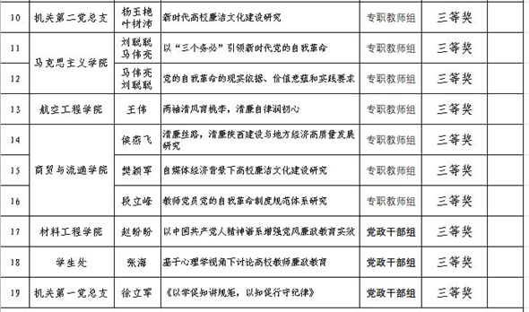 近日,陕西省廉政文化研究会公布了《关于表彰“加强党的纪律建设 推进党的自我革命”主题征文获奖论文和优秀组织单位的决定》,我校共有19项作品获奖,其中张菲菲等7位教师荣获二等奖,王鑫宇等12位教师荣获三等奖,学校荣获优秀组织奖。