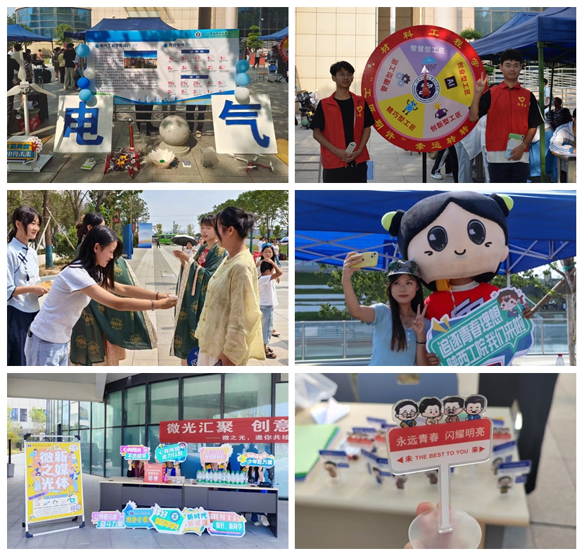本次迎新活动中,各二级学院发挥专业特点、社团特色,精心准备了具有特色的迎新活动,为现场增添活力。机械工程学院开展“家长说”寄语录制活动,以小切口推进家校合作;材料工程学院开展“工匠期许”幸运转转转活动,在转盘转动中许下梦想的种子;航空工程学院举办航模展,各类机型带着对新生的祝愿腾空而起;电气工程学院举办学生作品成果展,用一件件小发明诠释“科技改变生活,创新引领未来”的深刻内涵;汽车工程学院制作“工院新愿”愿望架,在绘制中让学生感受家人的殷切期待;土木工程学院开办创意建筑设计主题展,启发新生对未来住宅的无限想象;化工与纺织服装学院的同学身着汉服迎接新生到来,展现美轮美奂的传统服饰魅力;信息工程学院的同学们将梦想折进纸飞机,让梦想乘风起,向光行;商贸与流通学院吉祥物迈着活泼的步伐,在报道点前为新同学引路;财经与旅游学院设置雅致的茶艺展演,并请新生给家长添杯茶,教育新生感念父母恩。