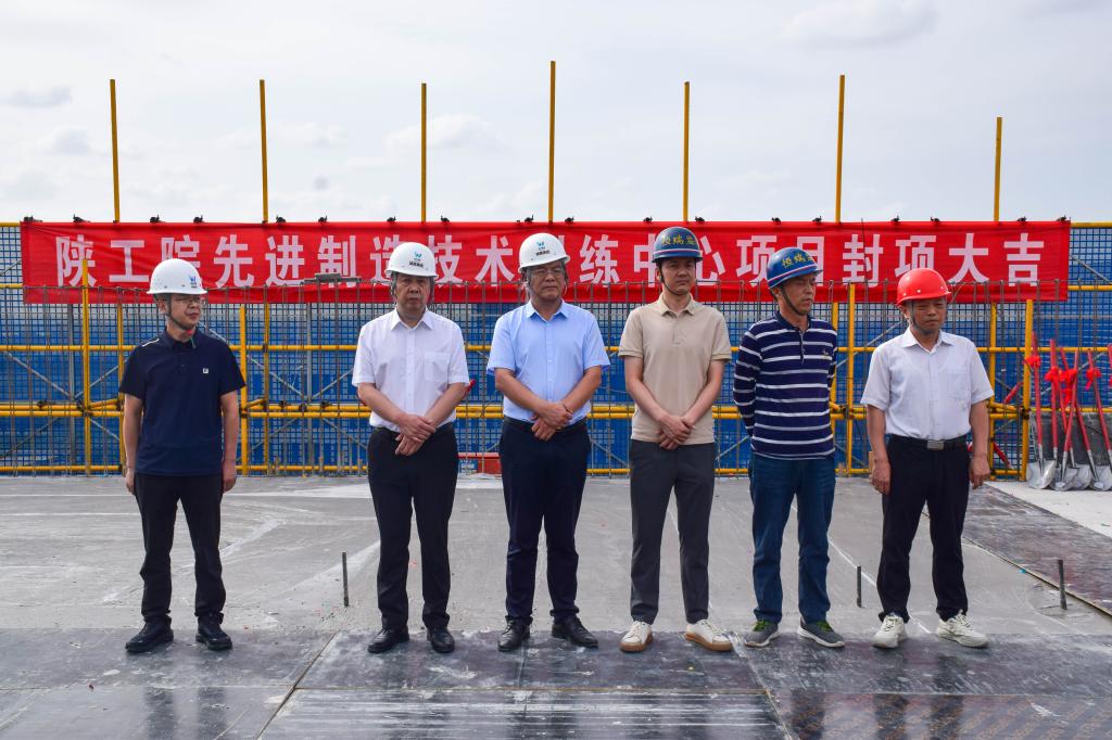 首先,施工项目经理祝国军汇报项目建设情况,项目总监理工程师高战荣汇报工程质量监控工作,学院项目负责人、副院长刘清致辞,随后,刘永亮校长宣布陕西工业职业技术学院先进制造技术训练中心项目顺利封顶。刘永亮校长在讲话中,充分肯定了参建各方克服不利因素,取得项目主体结构封顶重要节点的努力,勉励大家继续做好项目建设工作:一要持续抓好工程质量管控,严格细节管理,确保工程建设质量;二要继续抓好安全生产,安全工作无小事,尤其人身安全要高度重视;三要继续抓好工程进度管理,统筹好各项工序、人员、材料设备等协作,保证明年按期完工;四是要加强项目成本管理,精管细算,发挥中央投资效益的最大化,为学校基础建设交一份完美的答卷。