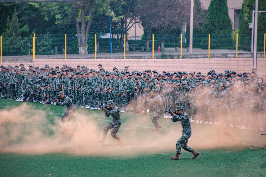 军训汇报暨总结表彰大会在雄壮的国歌声中拉开帷幕,鲜艳的五星红旗冉冉升起。随着校领导指示下达,军训汇报表演正式开始,全体受训学生军姿威严、队列整齐,以饱满的精神状态接受检阅。拳拳虎虎生风,招招势如破竹,军训科目汇报中参训学生们分别展示刺杀操、军体拳擒敌拳、匕首操、应急棍、战术表演等多个科目,一劈一扫,一挑一斩,迎风招展利剑出鞘,虎虎生威尽显工院学子飒爽风姿;豪情满怀,作战有术,干脆利落,一气呵成,气势恢弘的战队小组通过默契协作完成实战模拟任务,一招一式无不展现着坚毅果然的拼搏劲。