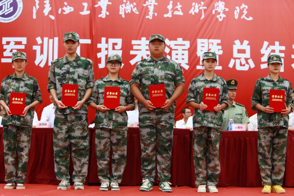 在宣读了对军训先进集体、先进个人和优秀教官的表彰决定后,学校领导为获奖集体和个人颁发了奖状及证书。机械工程学院石浩杰、财经与旅游学院王可儿分别代表全体新生分享了军训感想,表示军训不仅锻炼了身体,更磨砺了意志;不仅学会了自律,更懂得了责任;将以军训中锤炼出的不屈不挠、勇于挑战的精神为动力源泉,以坚韧不拔与持之以恒为基石,以严谨求实、孜孜不倦的态度刻苦学习,立志成长为大国工匠、能工巧匠、高技能人才。