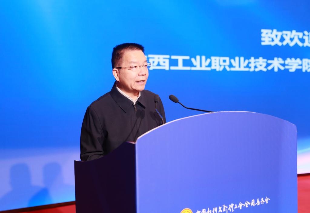 党委书记惠朝阳在致辞中表示,职业院校是建设高素质产业工人队伍、助推产改的核心要素。近年来,陕西工业职业技术学院以“产改”试点单位建设为抓手,坚持“产教融合、校企合作、育训并举”,聚焦产教融合过程中产业与教育、学校与企业、育人与培训等难题,从“专项研究”赋能、“产业学院”驱动、“工匠学院”牵引等方面发力,探索了高职院校以工会组织为纽带引领产改的新路径,走出了一条具有陕工特色和装备制造业特质的职业教育集团化办学发展之路。今后,学校将继续以党建带工建为抓手,以产教深度融合为主线,探索创新学校工会在新时代促进经济社会发展与技能人才培养的新模式、新路径,形成“产改”工作陕工方案与经验,为建设制造强国、实现中国式现代化培养造就更多大国工匠和能工巧匠!