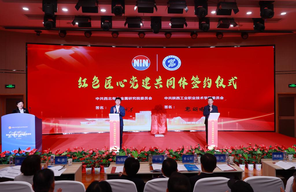 由陕西省总工会推动、西北有色金属研究院和陕西工业职业技术学院共同组建的“红色匠心”校企党建共同体在活动中签约,以共同体为牵引打造的校企联合工匠学院正式揭牌成立。今后,该共同体将基于党建引领业务工作高质量发展的共同目标,把“千条线”拧成“一股绳”,发挥校企合作双方各自优势,共同探索校企联合新模式,培育适合技能人才快速成长的育人新机制,构建适应企业发展需求相适应相协调的人力资源开发体系,以党建链串联产业链、以产业链集聚人才链、以人才链支撑创新链,为加快发展新质生产力增势赋能。