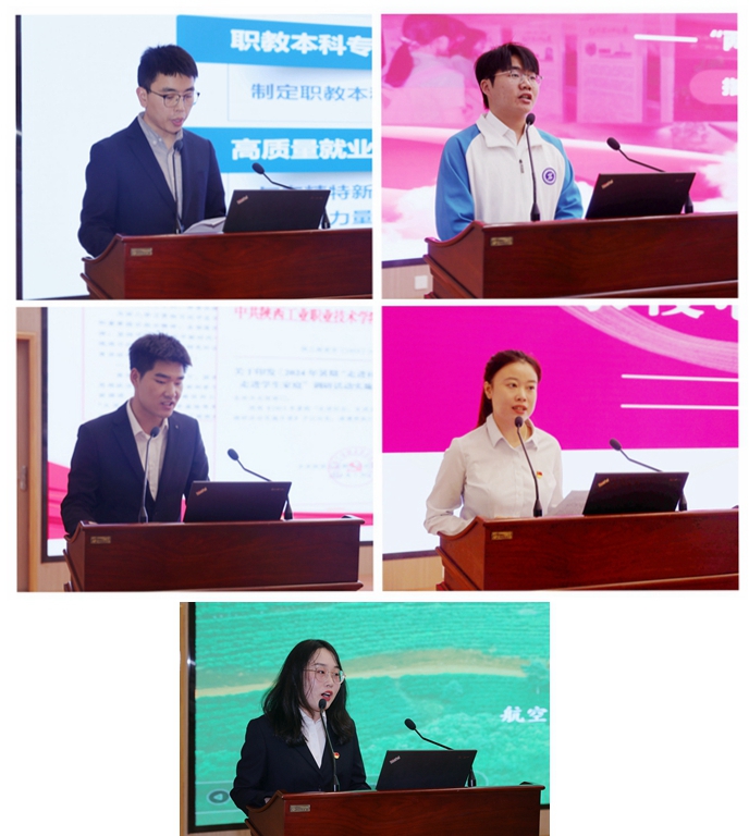 在交流环节,获奖代表电气工程学院陈春山、材料工程学院材料2203班黄杰、马克思主义学院龚洪松、信息工程学院李丹、航空工程学院李若辰分别作为“走进企业”优秀调研团队、“走进社会”优秀专项社会实践团、“走进社会”优秀调研报告、“走进学生家庭”优秀调研报告和优秀指导教师代表进行交流发言。汽车工程学院常雪娇,为在场同学们进行“大思政课”成果展示;大学生传媒协会的同学们现场表演红色作品诵读。