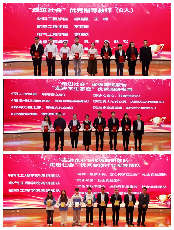 会上,大家一同观看了《家校企社共育时代新人 实践“熔炉”淬炼青春本色》2024年“三走进”活动专题视频。宣传部部长王金辉总结了2024年“三走进”活动开展情况。校领导分别为2024年“三走进”活动优秀调研团队、优秀调研报告、优秀社会实践服务队和优秀指导教师进行了颁奖。