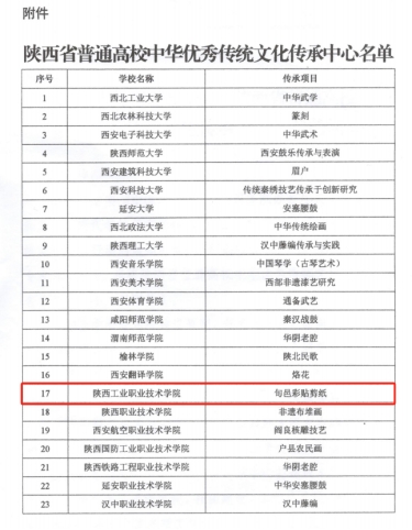 近日,陕西省教育厅公布了2024年陕西省普通高校中华优秀传统文化传承中心名单,我校美育部组织申报的“旬邑彩贴剪纸”传承项目成功获批,成为全省中华优秀传统文化传承中心之一。