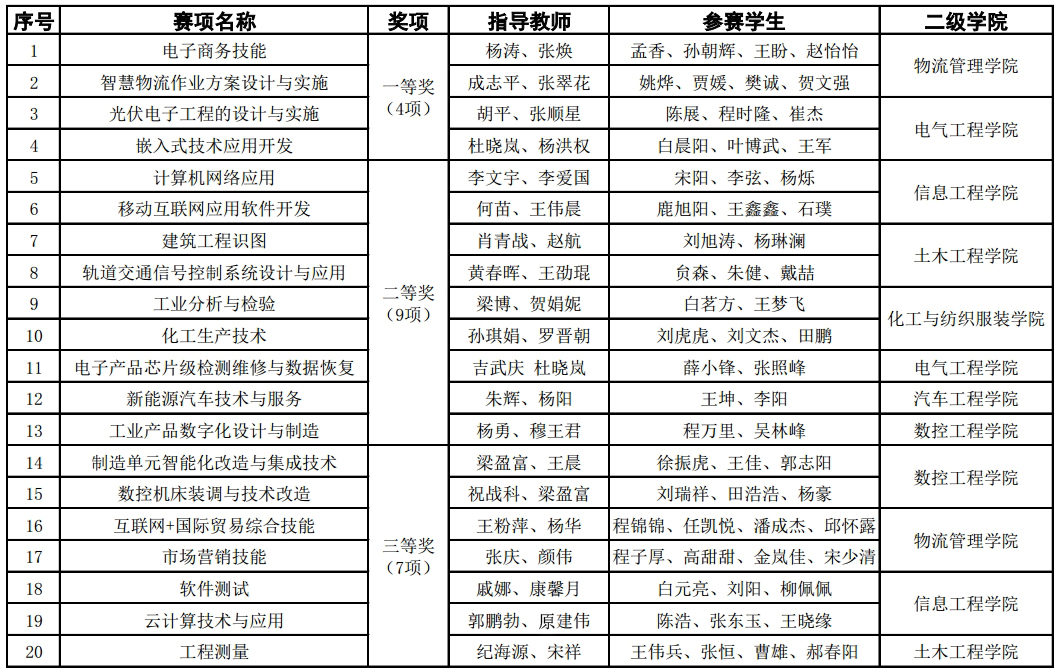 截止6月14日,乐游棋牌代表陕西参加2018年全国职业院校技能大赛的25个赛项已全部结束,在比赛过程中,全体指导教师精心辅导、扎实培训,全体参赛选手顽强拼搏、积极应战,25支参赛队共取得一等奖4项、二等奖9项、三等奖7项,总计20项的历史最好成绩。奖项和一等奖总数量均实现新突破,国赛成绩稳居陕西高职院校首位。