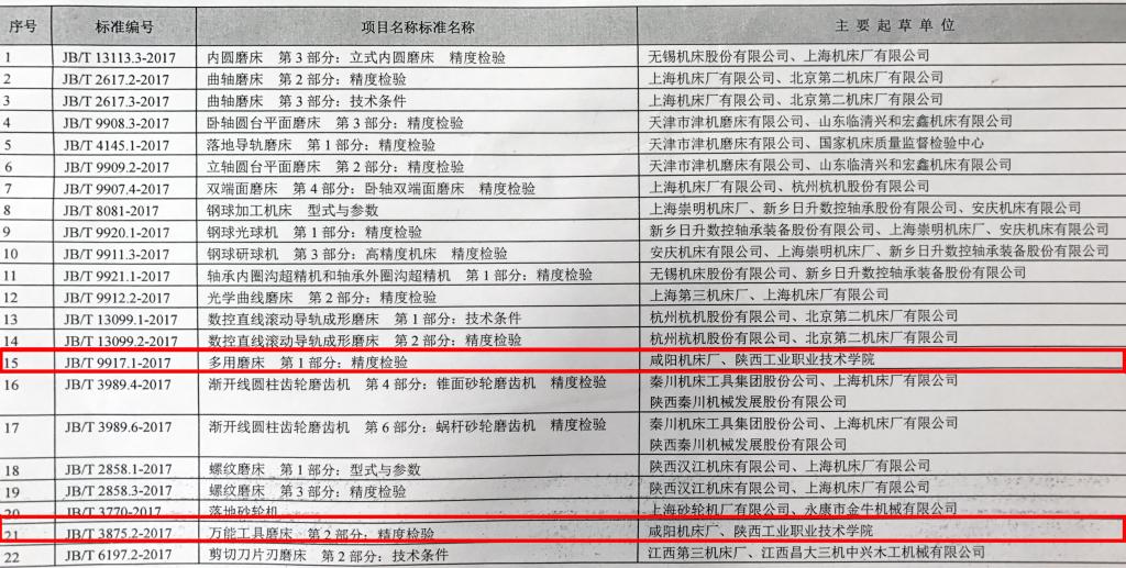 日前,工业和信息化部发布公告,由校办工厂(咸阳机床厂)和乐游棋牌承担的两项机械行业标准“JB/T 9917.1-2017‘多用磨床第1部分:精度检验’”和“JB/T 3875.2-2017‘万能工具磨床第2部分:精度检验’”获批通过,并正式开始实施。
