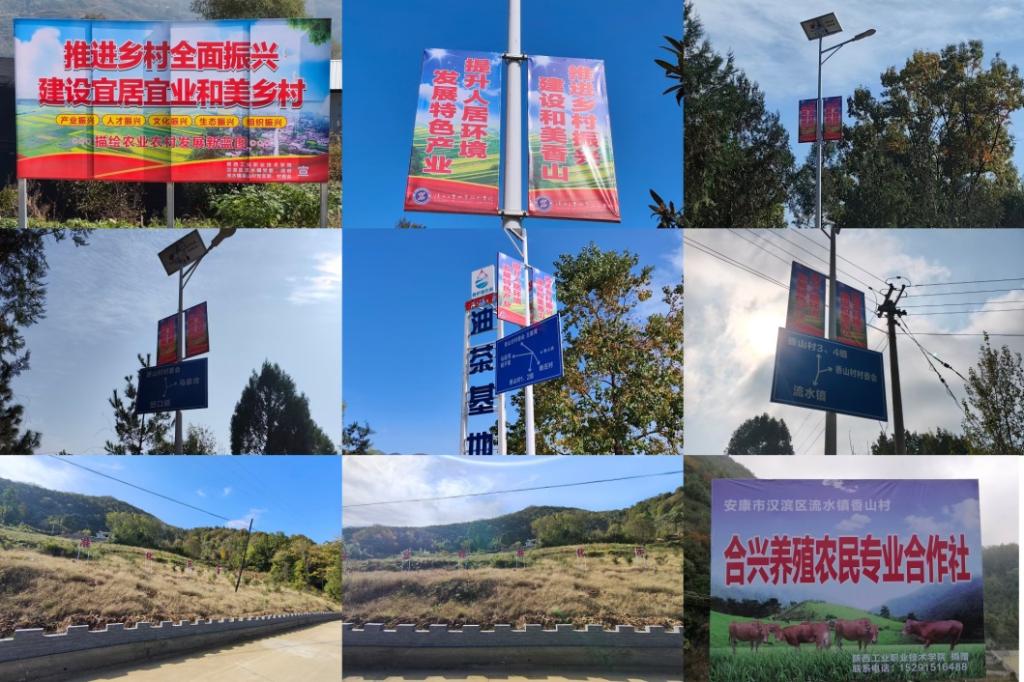 创建“高颜值”示范路段。2024年,学校以示范路段建设为抓手,通过砌墙美化、安装交通指示牌、安装路灯道旗、制作大型宣传板等举措,打造乡村“高颜值”。示范路段的建设,给香山村提供了一道靓丽的风景线,有效推动了香山村人居环境的提升。