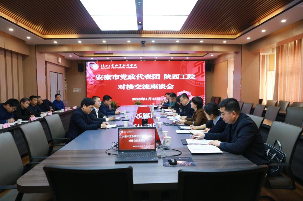 党委书记惠朝阳对安康市党政代表拜访团一行表示热烈欢迎。他结合我校在职教本科创建、国家“双高计划”终期验收、全国高校党建示范校建设验收、当选世界职业技术教育发展联盟理事单位等方面,介绍了我校的基本情况和过去一年取得的成绩。他强调,我校始终把定点帮扶作为一项重要的政治任务和责任担当。学校还将继续发挥教育、人才、科技等资源优势,结合安康产业发展和乡村振兴工作实际,不断拓展合作的高度、深度、广度,助力安康市地方经济社会高质量发展。