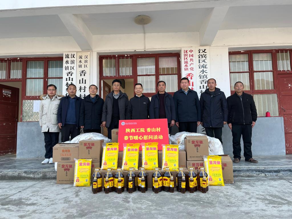1月20日,我校党委书记惠朝阳携组织部、振兴办相关同志来到安康市汉滨区流水镇香山村看望慰问村民,为村民赠送了米面油等慰问品,并现场书写春联送去蛇年新春的美好祝福。