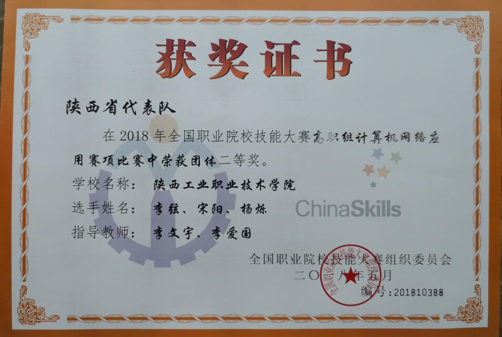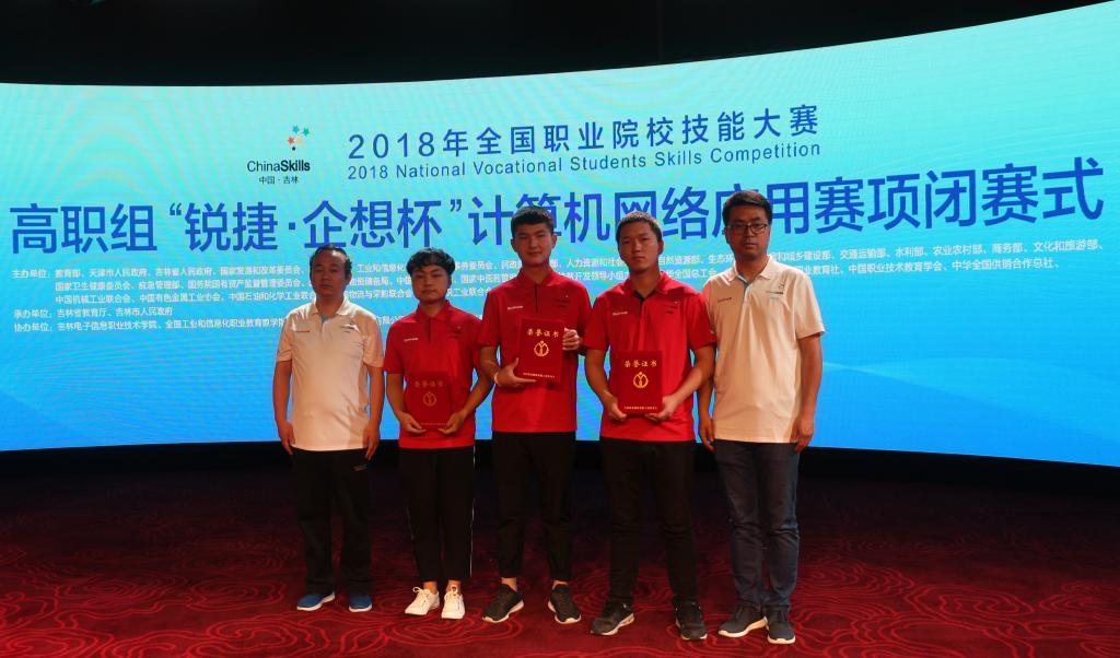 6月3日,2018年全国职业院校技能大赛高职组“锐捷·企想杯”计算机网络应用赛项在吉林电子信息技术学院顺利结束,全国30个省市的86支代表队参加了比赛,经过了四个小时的激烈比拼,由乐游棋牌信息工程学院教师李文宇、李爱国指导的网络1601班李弦、计应1603班宋阳和网络1702班杨烁等3名同学荣获团体二等奖。