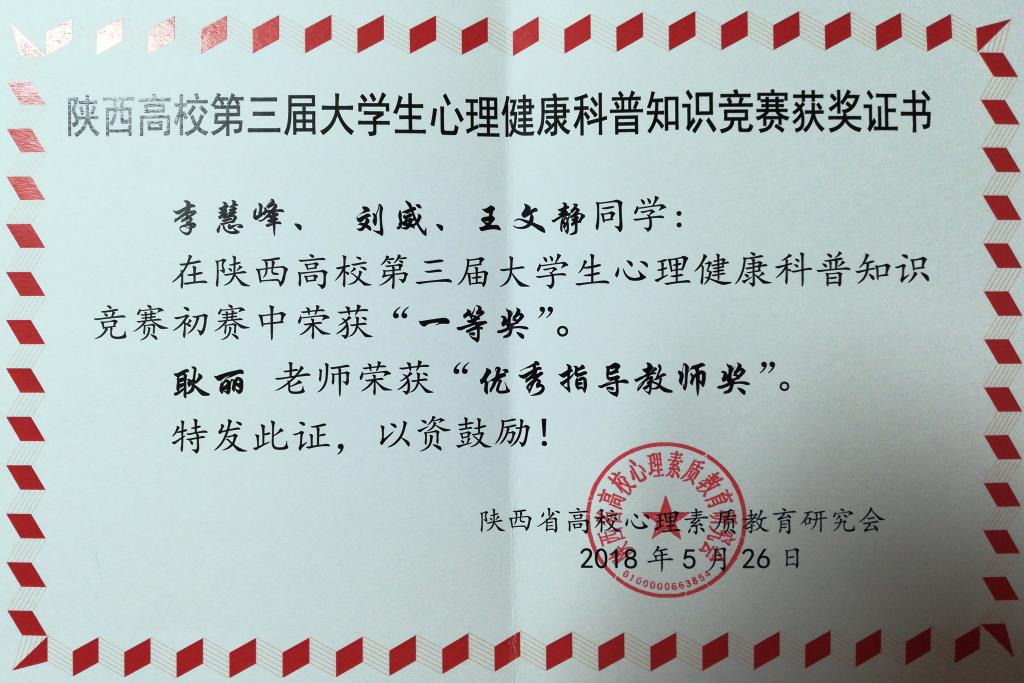 乐游棋牌获陕西高校第三届大学生心理科普知识竞赛二等奖
